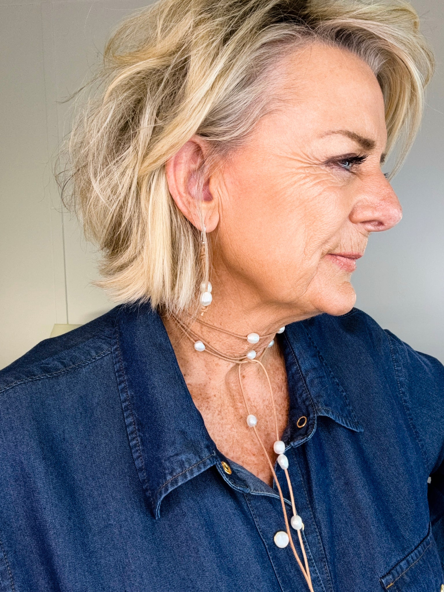 Effortlessly elegant, these genuine leather and freshwater pearl drop earrings are the perfect match to our best-selling lariat. Lightweight, earthy, and timeless — they add a natural touch of sophistication to any look.